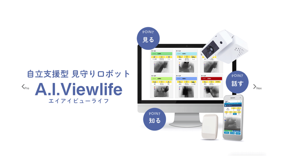 A.I. Viewlifeは、AI技術を駆使して介護施設や医療機関での利用を想定した見守りロボットです。
