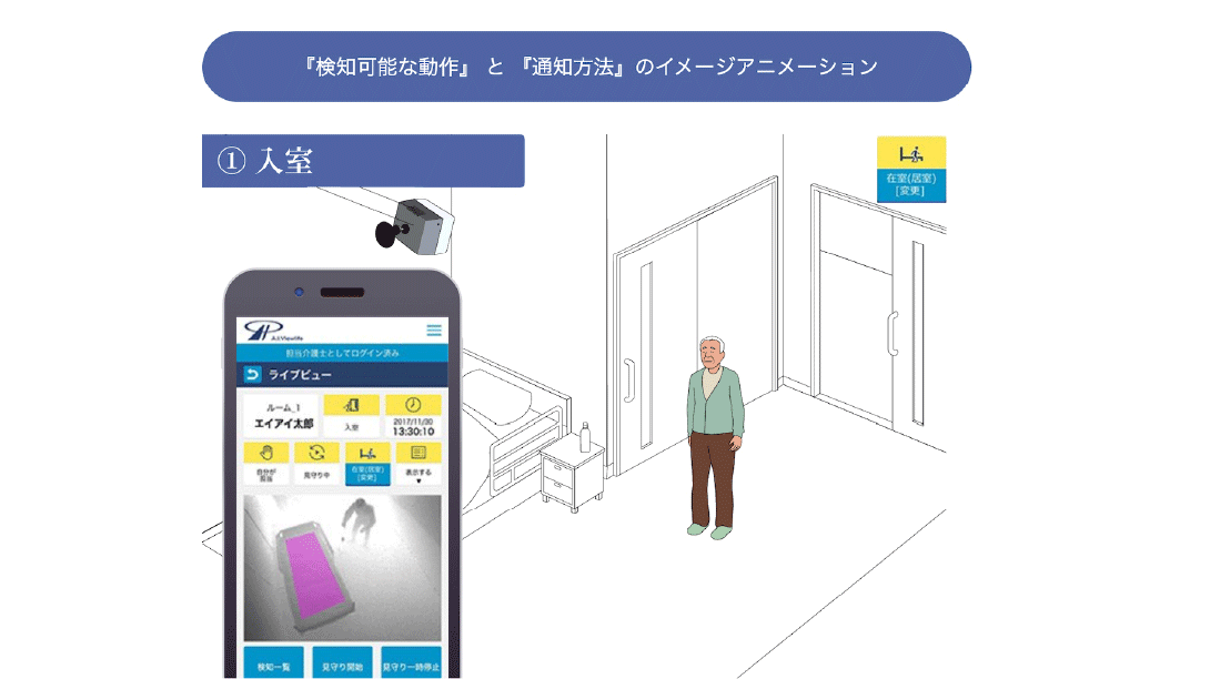 これにより人が24時間監視カメラを使って、見守る必要がなくなり、医療・介護現場の負担を軽減しています。