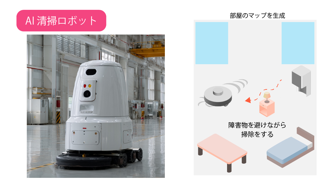 たとえば、掃除ロボットは、事前に教えなくても部屋の間取りを学習し、最も効率的なルートで清掃を行います。