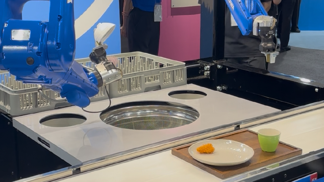加えて、バックヤード業務を支援するAIロボットの導入も進んでいます。たとえば、食べ終えた食器とお盆を所定の場所に置くと、AIが食器の種類を判別し、 ロボットアームが自動で食洗機にセットするシステムなども実用化されつつあります。